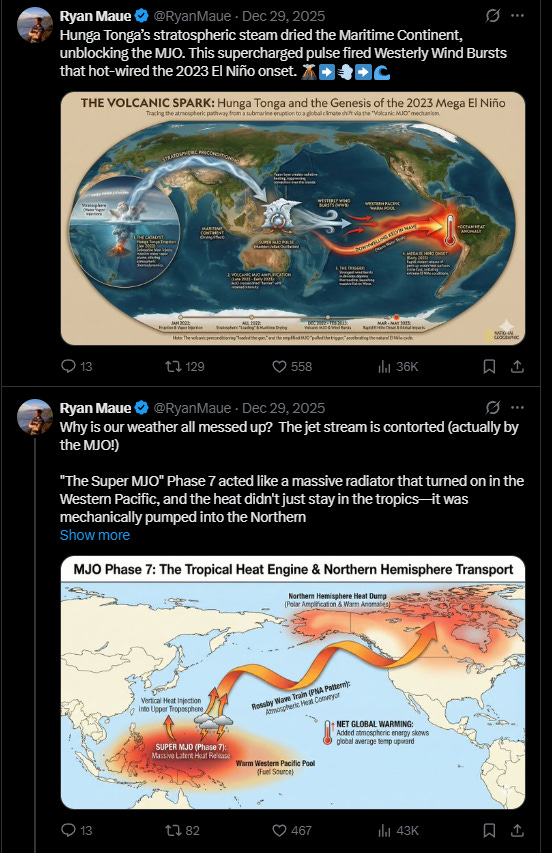 Dr. Ryan Maue has been posting a lot of very interesting tweets linking these two factors on his X account. I’ve copied and pasted most of them below, as well as some of the articles he has referenced.