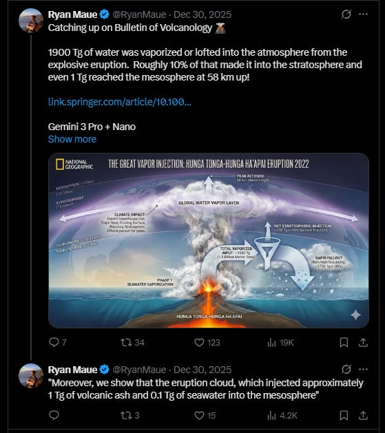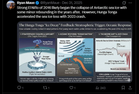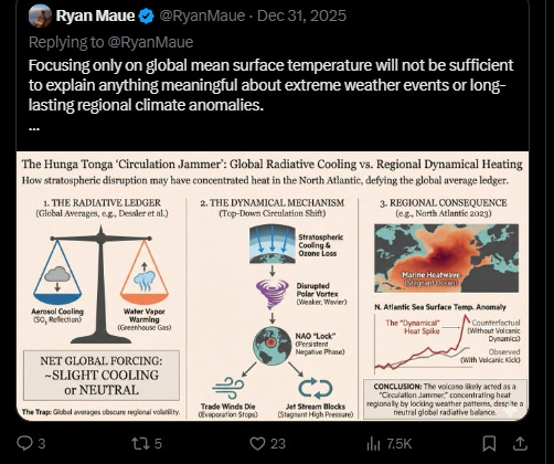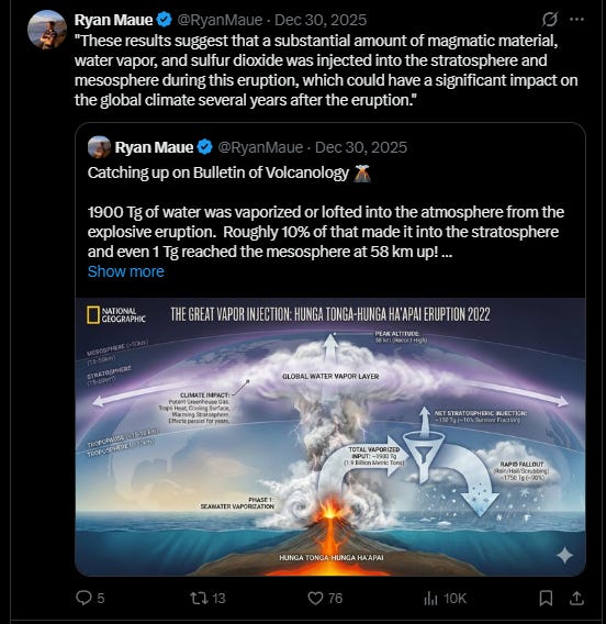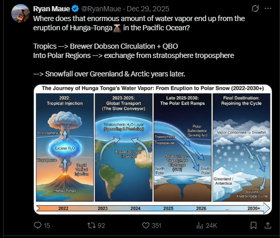 Imagine a single volcanic eruption in 2022 pumping 14% more moisture into our atmosphere overnight The Hunga Tonga blast wasn't your typical ash-spewing monster like Tambora in 1816, it unleashed a water vapor canopy that's been reshaping weather patterns worldwide, from shrink-wrapped cyclones to blocked winds causing mega El Niños. Now, as this vapor finally rains out, we're entering a chaotic "snapback" phase in 2026 and beyond.