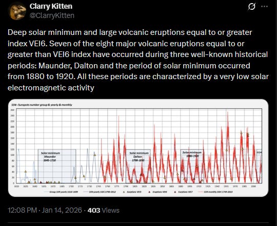 Connecting The Dots Between Solar Cycles/Volcano Activity & Their Role In Our Planet’s Weather & Climate Cycles.