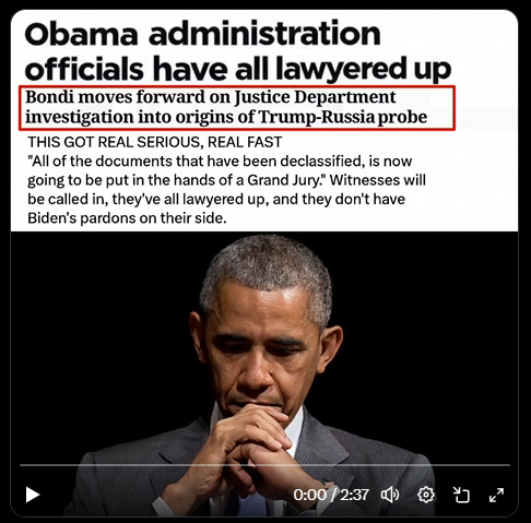 OBAMA ADMIN. OFFICIALS HAVE ALL LAWYERED UP as Attorney General Bondi moves forward on DOJ investigation into origins of Trump-Russia probe.